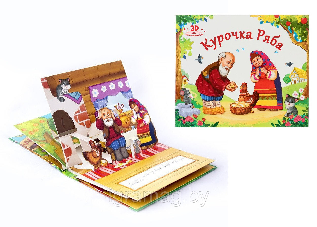 Книжка-панорамка с объемными картинками 3D Курочка ряба