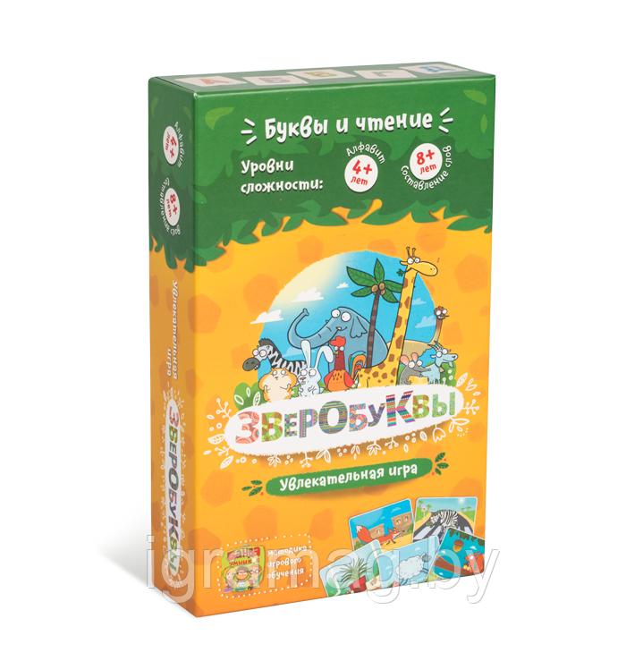 Настольная игра Зверобуквы помогает детям легко запомнить алфавит без утомительных занятий и необходимости что-то целенаправленно учить. После этого можно перейти к более сложным и увлекательным правилам, в которых нужно складывать буквы в слова наперегонки с соперниками!